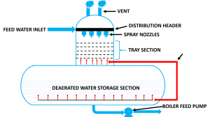 Therefore, by reducing the partial pressure by adding steam to the deaerator, the solubility of gases decreases. Gases dissolved in the feed water can be removed by spraying water into the steam environment where the partial pressure of the gas is reduced.