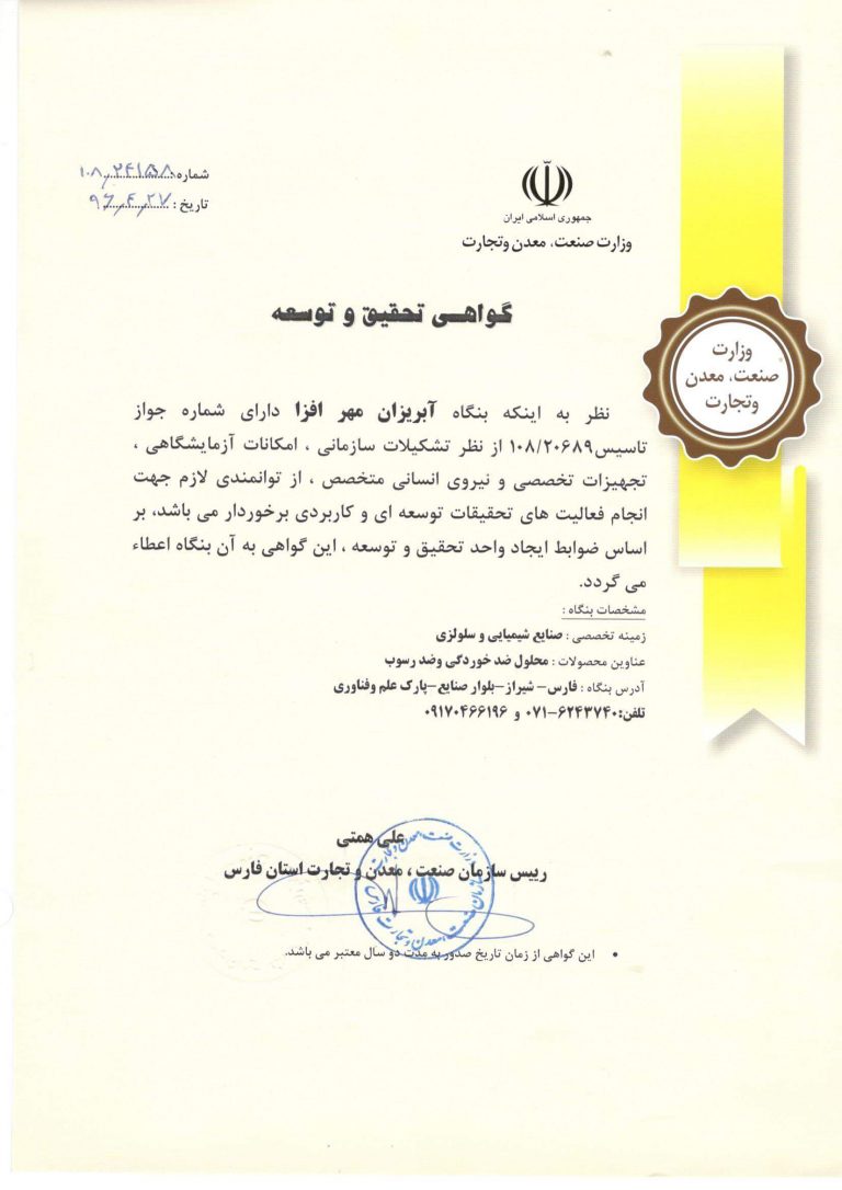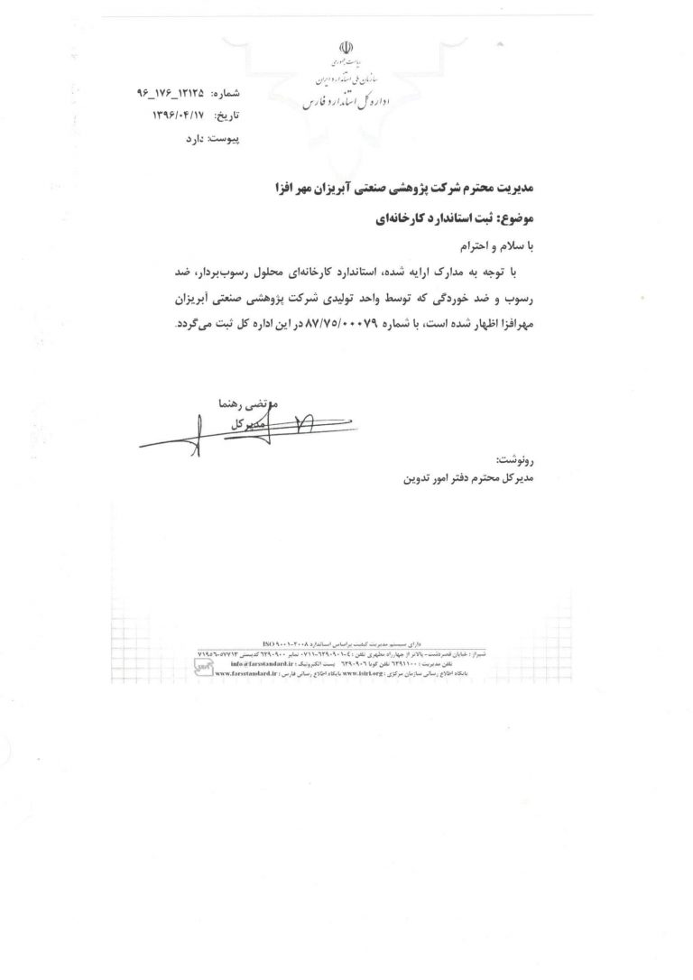 گواهینامه کیفیت محصولات
