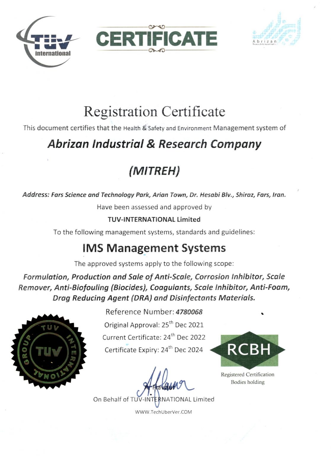 TUV international Certificates